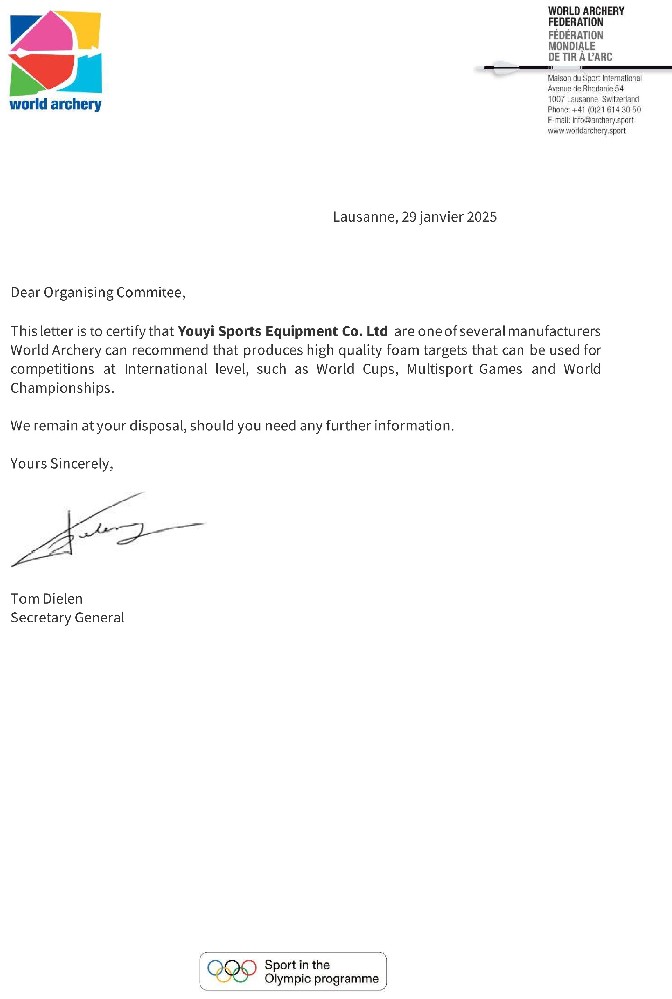 公司自主生產(chǎn)的器材先后成為2008年北京奧運(yùn)會、2010年廣州亞運(yùn)會、2011年深圳世界大學(xué)生運(yùn)動會、2014年南京青奧會、2021年成都世界大學(xué)生運(yùn)動會、2022年杭州亞運(yùn)會等世界知名賽事射箭器材供應(yīng)商。